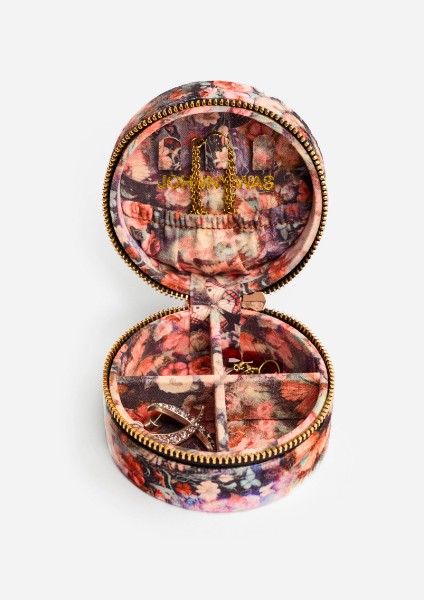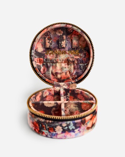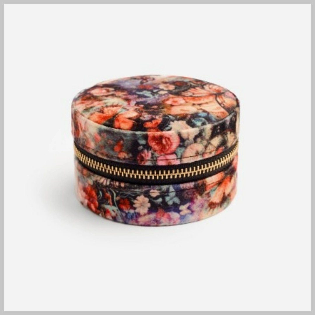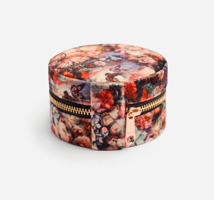 The Teyros Jewelry Box has been thoughtfully designed to rival the beauty of the jewels it houses. Crafted with a durable wooden base wrapped in rich velvet fabric, this unique piece features a zippered closure and is finished with a bold pattern embellished with colorful florals. Add to your dressing area for a splash of color to enhance your decor.