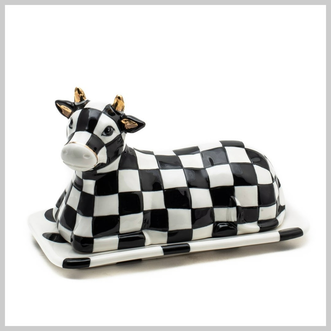 On our farm, we’re inspired by everything around us, including our barnyard buddies. The ceramic Cow Creamery Butter Dish pays homage to that with a hand-painted checked cow, trimmed in gold lustre, atop a dish decorated with dots. Perfect, of course, for keeping butter in its place.