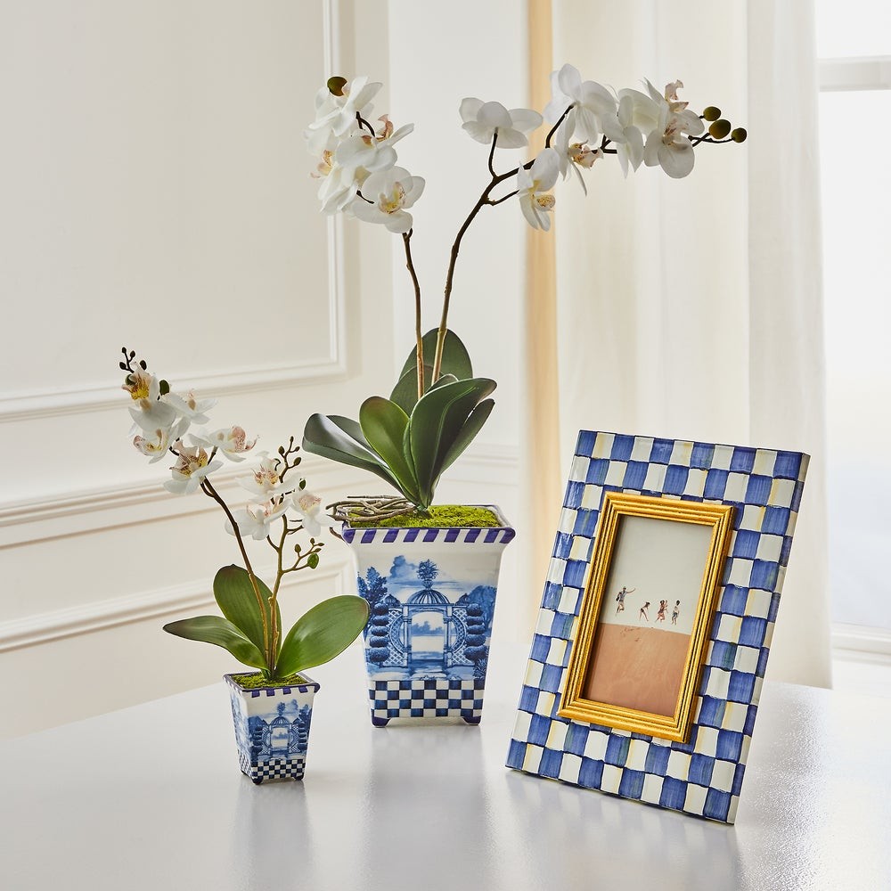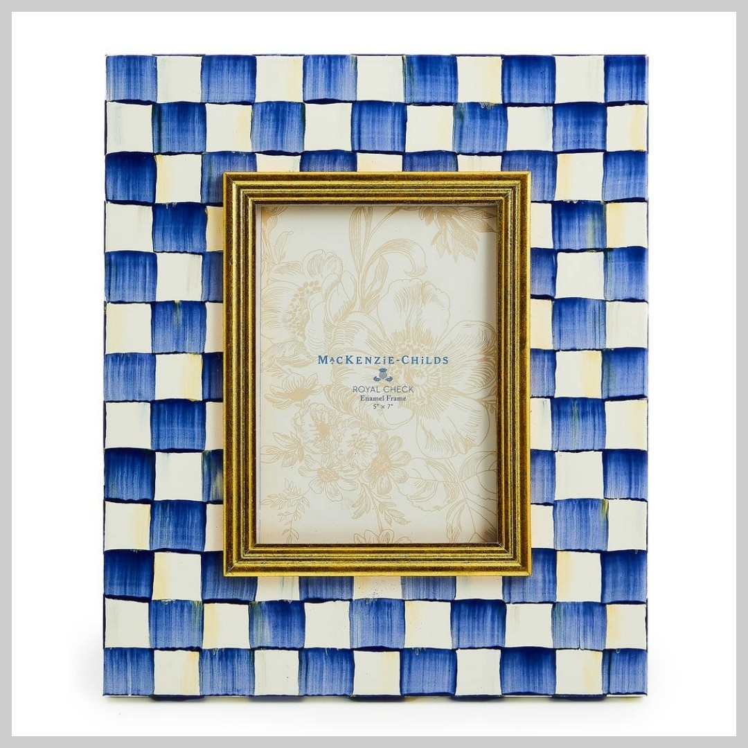 We’ve yet to find a photograph that doesn’t look fabulous in a Royal Check 5″ x 7″ Frame. Pepper this into your family photo gallery or give one as a standout gift for a friend. Steel underbody with hand-painted Royal Checks. Backing is one color of linen with a brass logo plate.