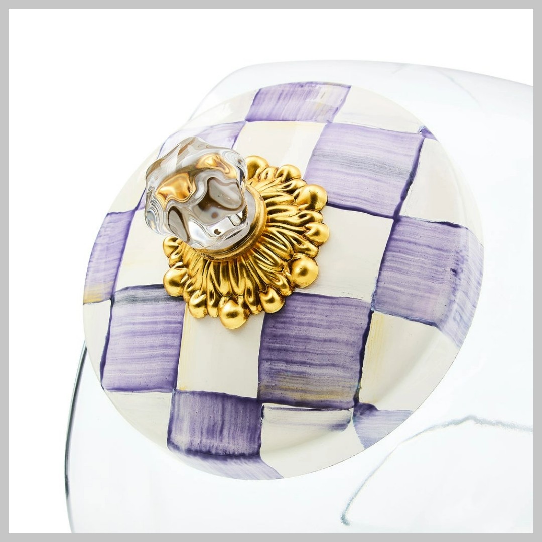 MacKenzie-Childs Violet Check Sweets Jar with Lid