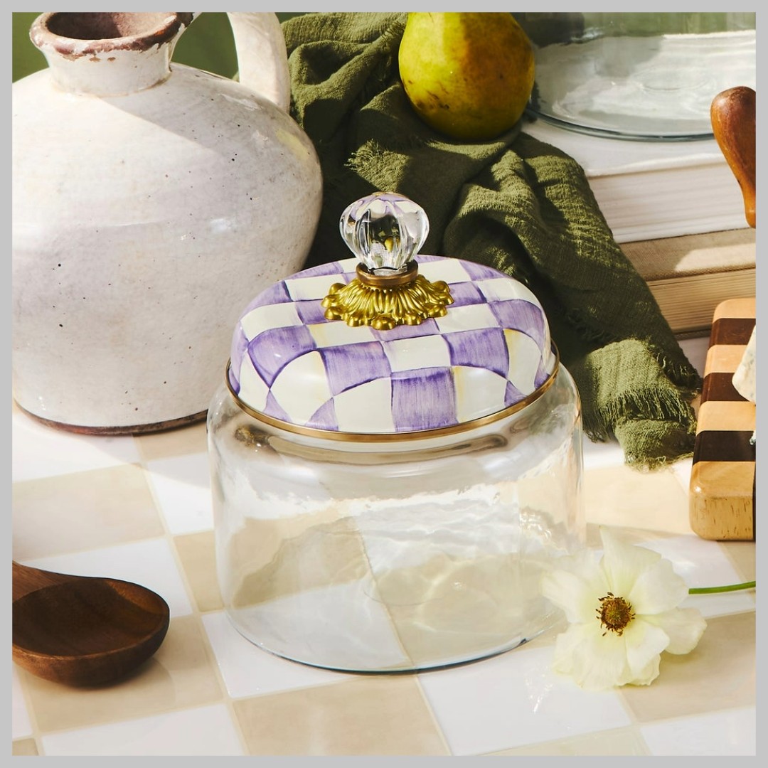MacKenzie-Childs Violet Check Small Kitchen Canister