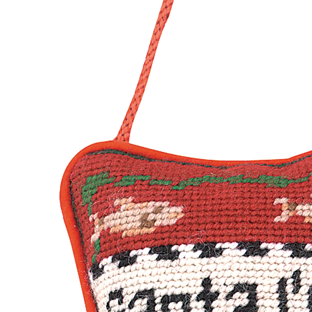 ★Handcrafted 100% wool needlepoint door hanger ★blown in fill ★100% cotton velvet backing ★5×7 inches ★Cat Christmas winter holiday hanging home decoration