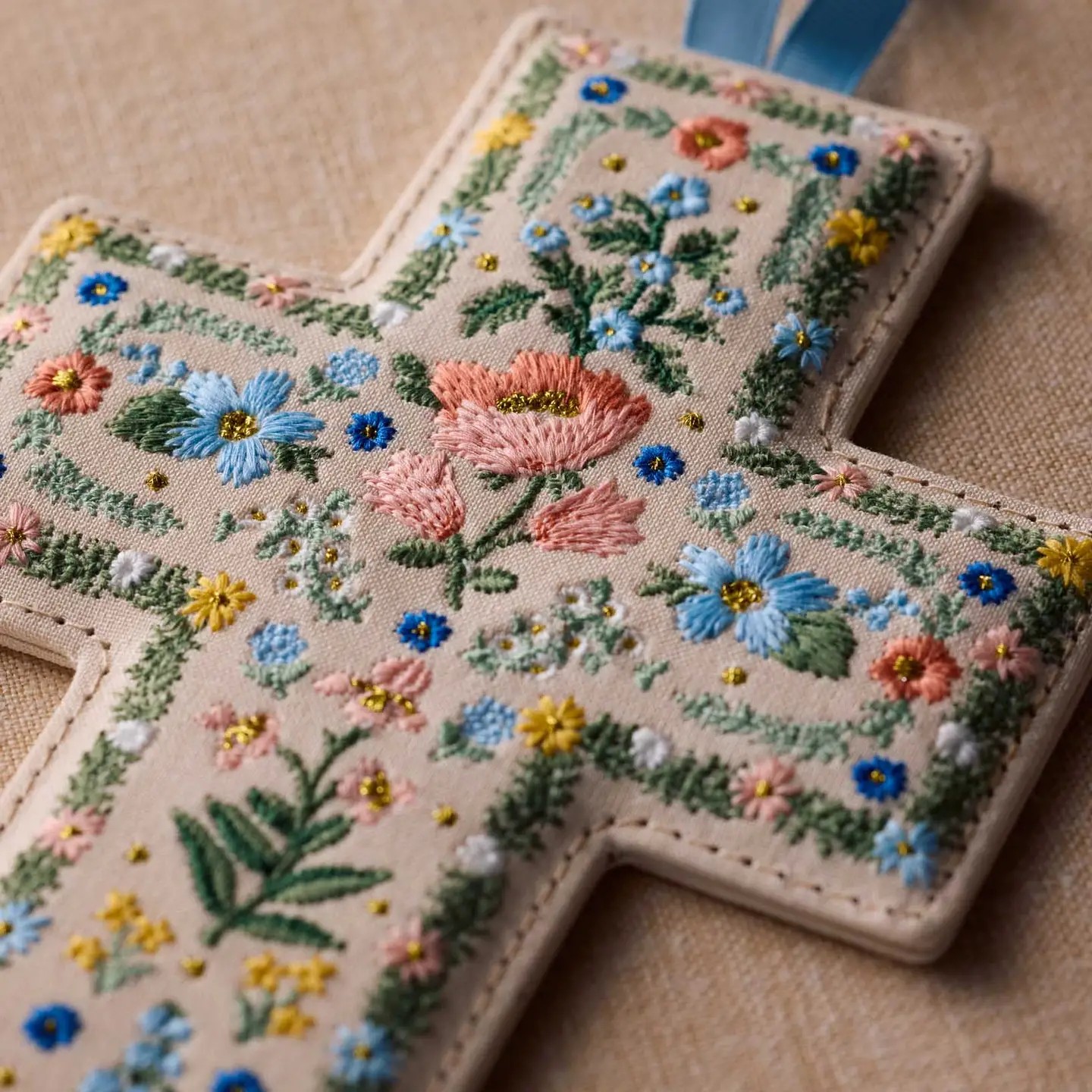 A keepsake-worthy accent, this embroidered, wall-hanging cross makes the perfect addition to your spring and Easter decor.