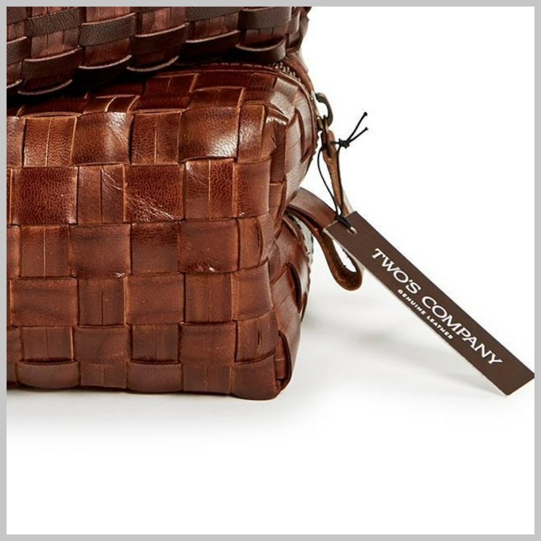 Chestnut Woven Leather Dopp Kit-Light Weave